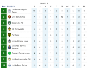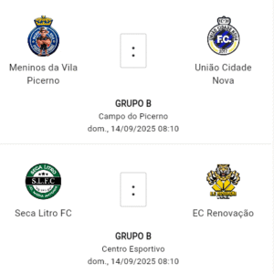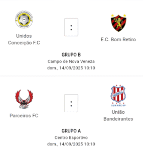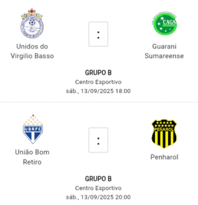 No Grupo B, o líder Unidos do Virgílio Basso mede forças contra o Guarani Sumareense, atual 8º colocado. O jogo acontece no sábado (13), às 18h00, no Centro Esportivo, em partida que promete movimentar a tabela.