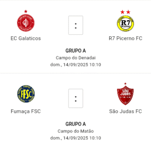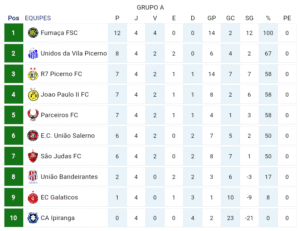 O Fumaça FSC, único time com 100% de aproveitamento, soma 4 vitórias em 4 jogos e lidera o Grupo A. Neste domingo (14), às 10h10, no Campo do Matão, a equipe enfrenta o São Judas FC, que busca surpreender o líder.