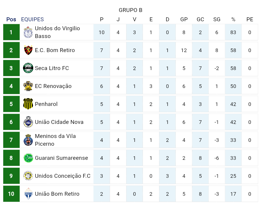 Grupo B: Unidos do Virgílio Basso defende liderança