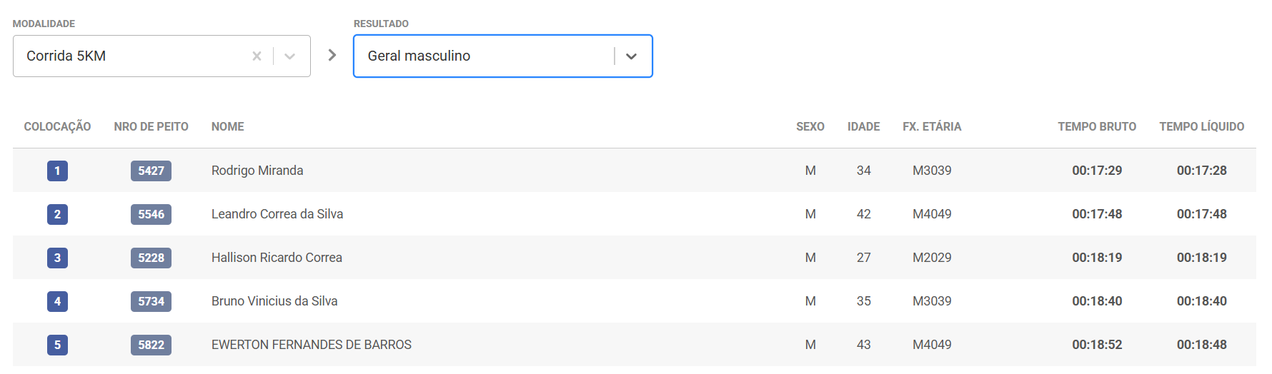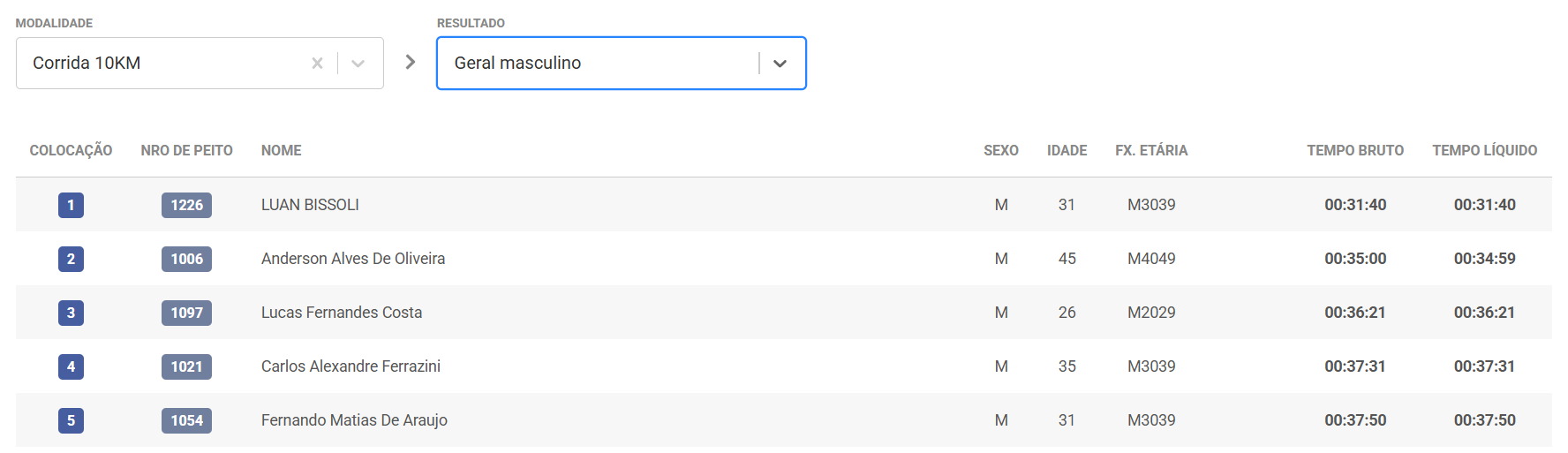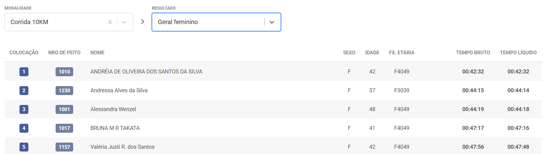 Confira a classificação de todos os atletas por categoria inscrita com a ChipTiming: