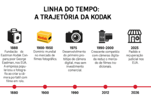 Fontes: Kodak, balanço financeiro 2025, análises de mercado, registros históricos da empresa.