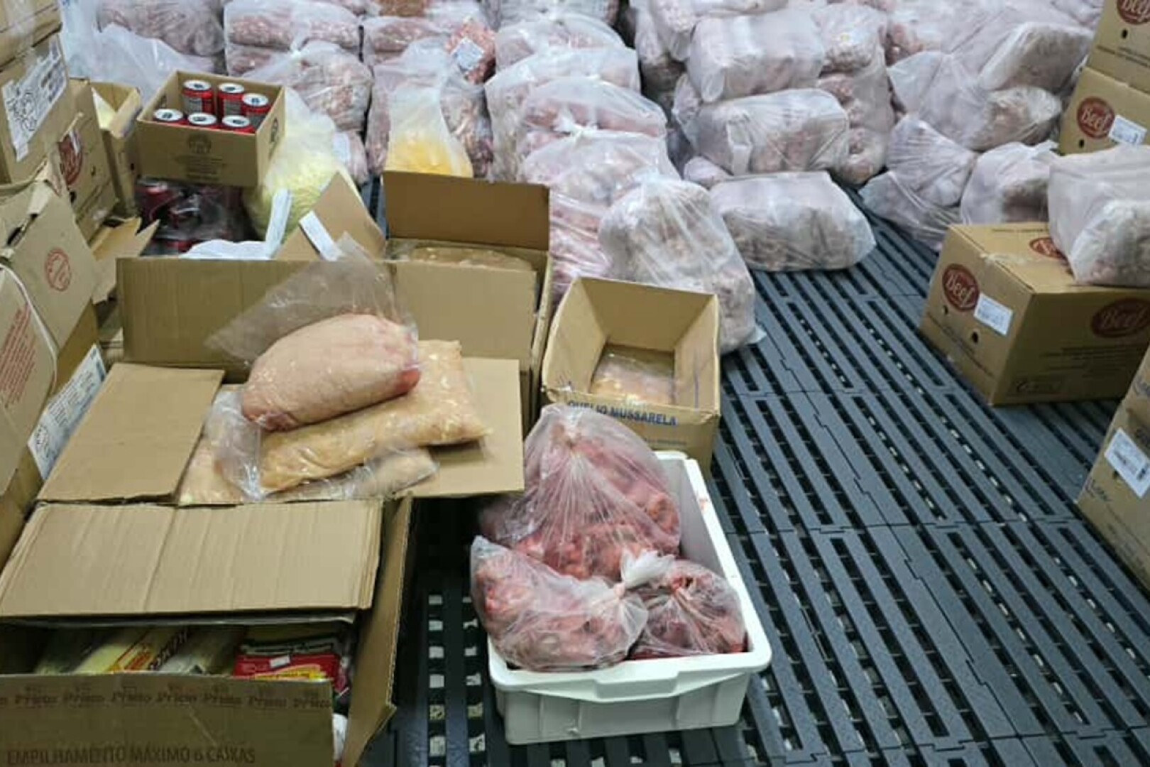 Durante a inspeção, os policiais encontraram 774,56 kg de carnes e frangos guardados de forma irregular em uma câmara frigorífica, supostamente destinados à produção de hambúrgueres. Também foram apreendidos 22 kg de pizzas prontas, quatro garrafas de ketchup de 3,8 litros e 14 latas de refrigerantes das marcas Fanta Uva e Guaraná Antártica, todos sem rótulo, procedência ou dentro do prazo de validade.