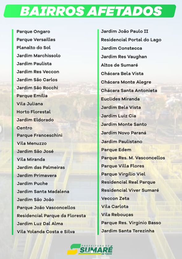 📰 Fontes: BRK Ambiental e Prefeitura Municipal de Sumaré.