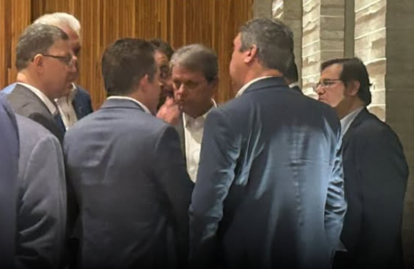 Durante seu discurso, Tarcísio de Freitas reforçou a importância de unificar a oposição em torno de um plano estratégico contra o governo Lula, tanto no Congresso Nacional quanto nas redes sociais.