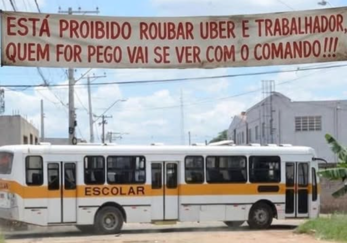 Uma cena que mais parece roteiro de série policial, mas que está acontecendo na vida real: faixas instaladas por integrantes do crime organizado no bairro Campo...